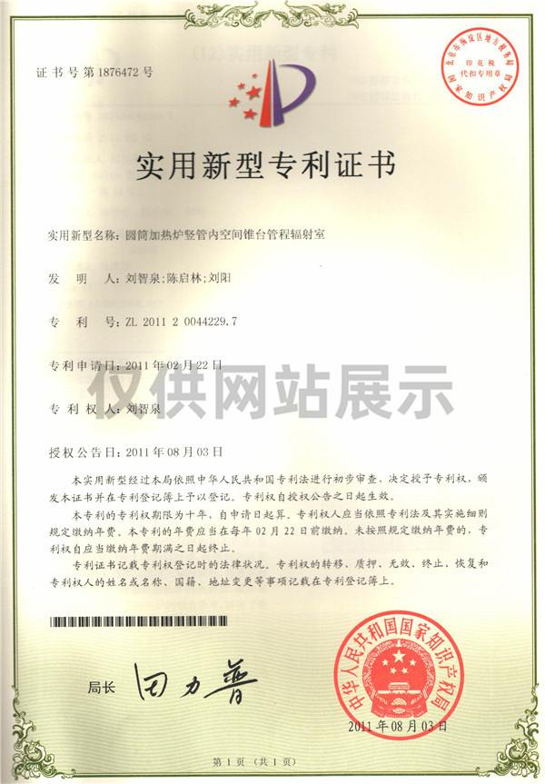 圓筒加熱爐豎管內(nèi)空間錐臺(tái)管程輻射室